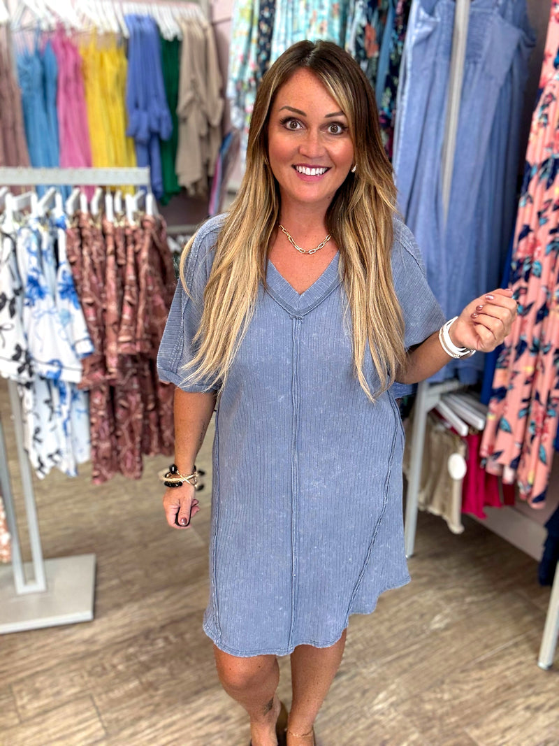 Edgy Mineral Washed Ribbed Knit Shift Dress